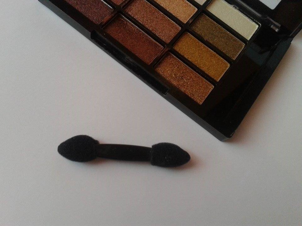 12 színt tartalmaz , összesen 12 g terméket. Van hozzá egy applikátor , ami szerintem teljesen használható. Ha más nincs kéznél tökéletes. Egy hibája a terméknek , hogy óvatosan kell vele bánni , könnyedén törik és elég porzós is.